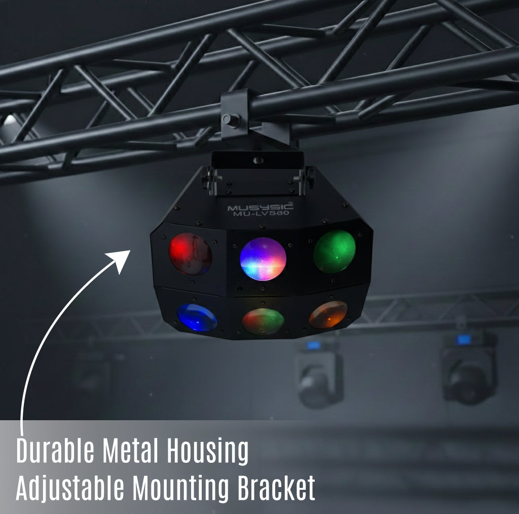 The MUSYSIC MU-LVS80 delivers powerful Derby Matrix Beam effects, advanced DMX control, and flexible operating modes—making it the perfect choice for lighting designers, DJs, and event professionals who want to fill the room with high‑energy, multi‑beam color effects.