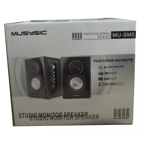 The MUSYSIC MU-SM5 Professional 5" studio monitor speakers featuring build-in power amplifier in the main unit. Driver protection circuitry, crossover filter enclosure. Elegant painting front panel and give you amazing performance and accuracy for the studio, home or small party.